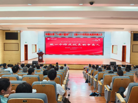 会议伊始,学校纪委第三纪检监察室肖睿主任带来《做一个作风优良的中南人》专题宣讲。肖睿主任结合高校工作实际,以详实案例和生动讲解,深入阐述了作风建设的重要性,为全体教职工敲响廉洁自律警钟,引导大家筑牢思想防线,树立优良工作作风。