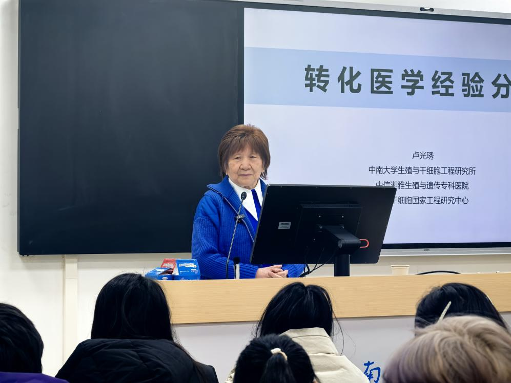 近日我国著名生殖医学与医学遗传学家、中信湘雅生殖与遗传医院首席科学家及终身荣誉院长86卢光琇教授走上讲台,为基础医学2501班本科生带来一场题为“转化医学”的专题讲座,以自身科研经历激励学生夯实专业基础、服务人民健康。
