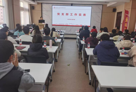 为进一步提升基层党支部工作的规范化、科学化水平,加强党务干部队伍建设,12月26日中午,我院党委在杏林校区孝骞楼447党建活动室举办党支部工作实务专题培训。会议特邀校党委组织部副部长郭飒飒同志来院作专题辅导。培训由学院党委书记王慷慨主持,党委副书记冯虹、党委委员张前军出席会议,各党支部副书记、组织委员参加学习。